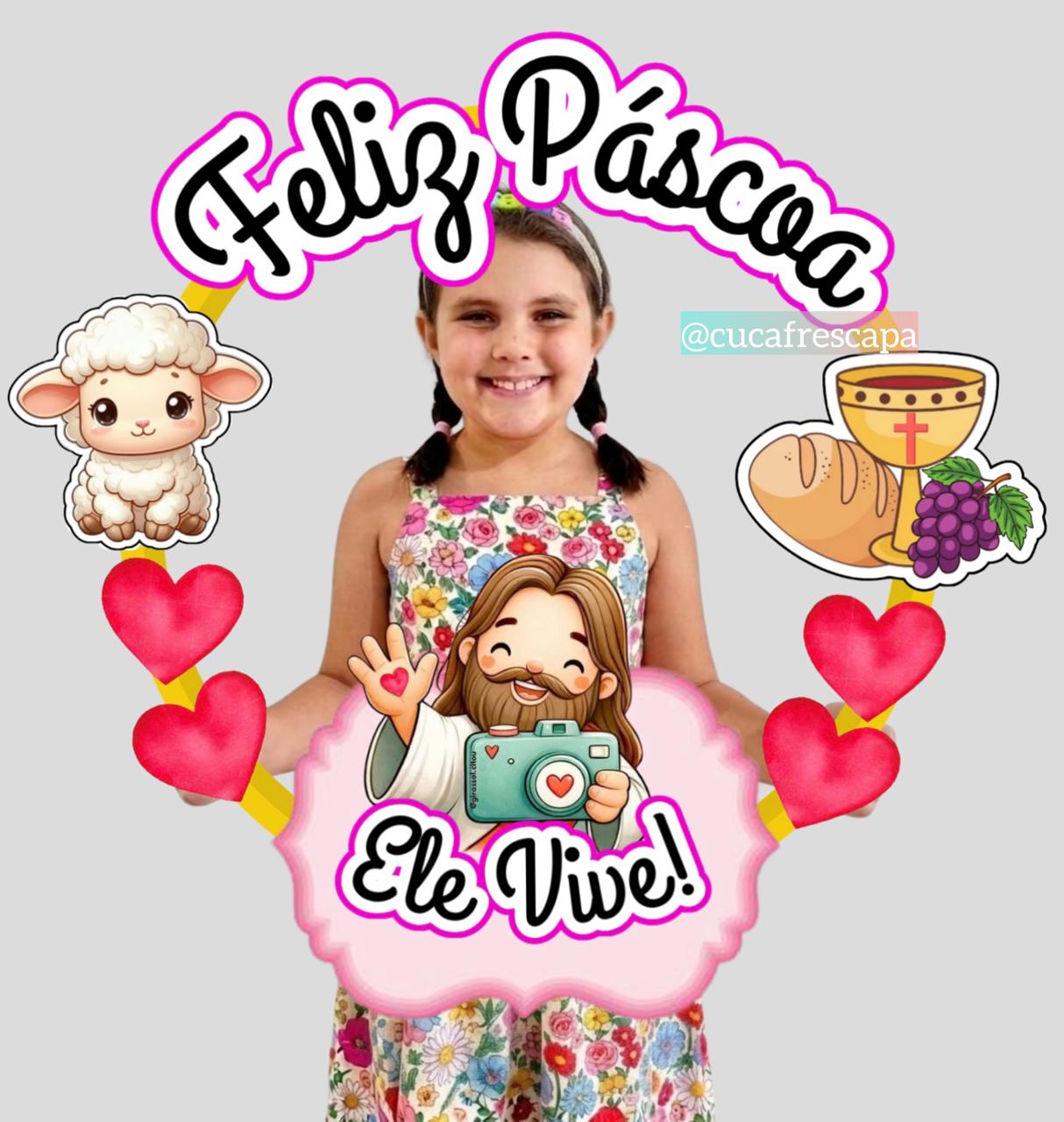 Um lindo bambolê para fotos, registrando a Páscoa com seu verdadeiro significado.