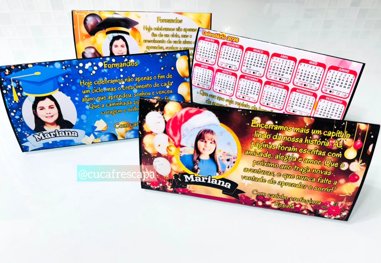 São 4 modelinhos diferentes de calendário de mesa com foto.
