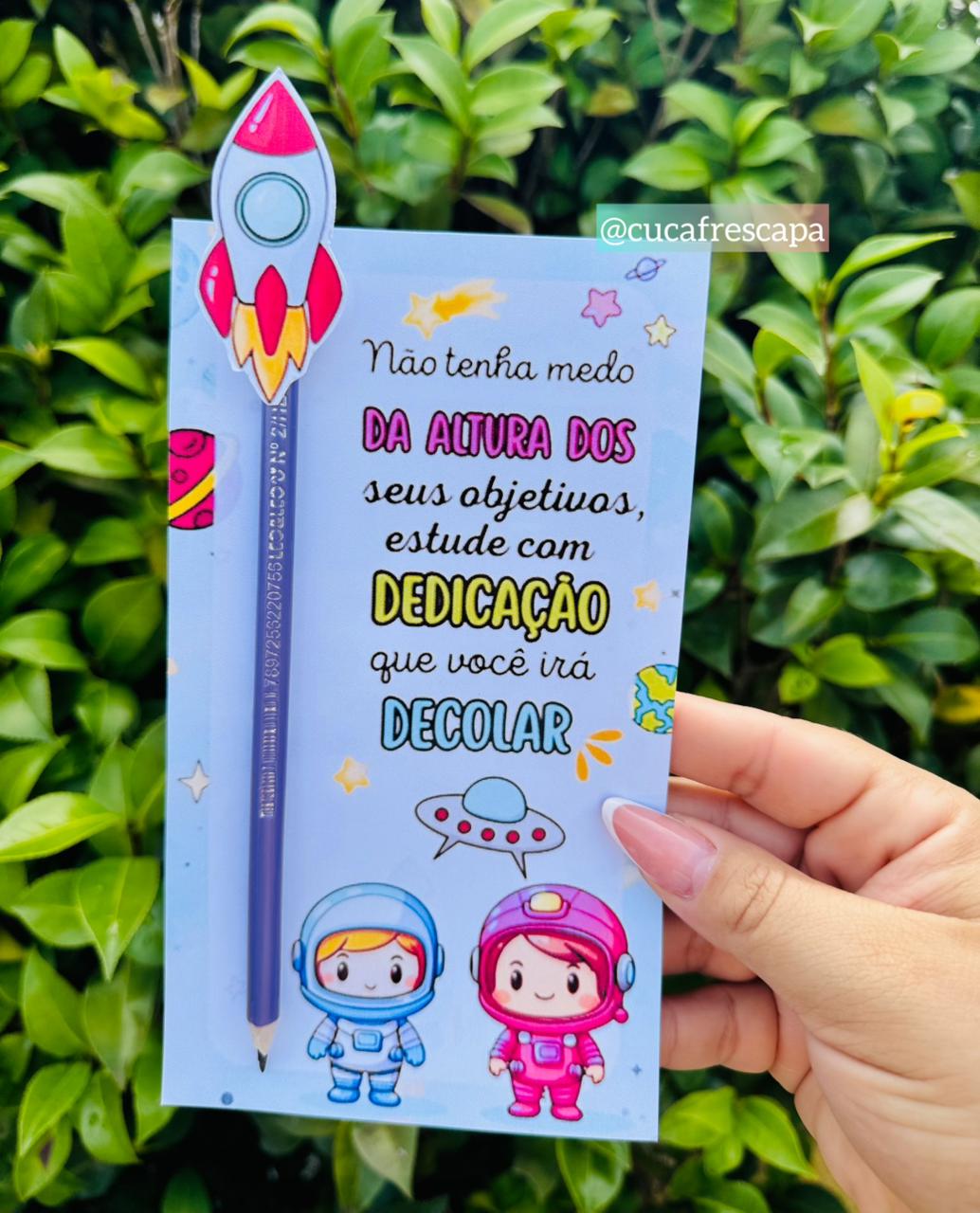 Preparamos uma linda lembrancinha em formato de cartão no tema astronautas.