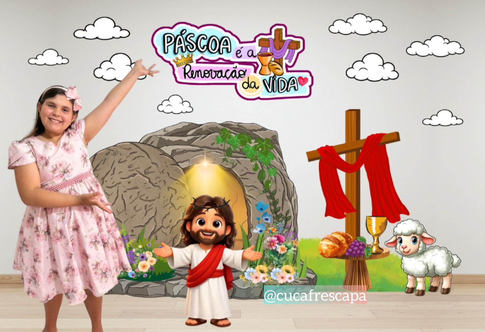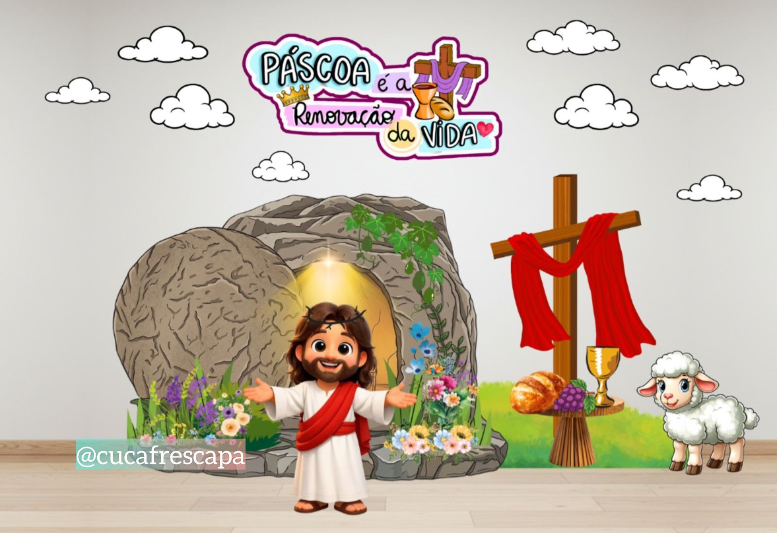 A Páscoa está chegando e para trabalhar com essa data admirável de maneira cristã, preparamos esse lindo cenário para ser usado em escola, igrejas e teatros.
