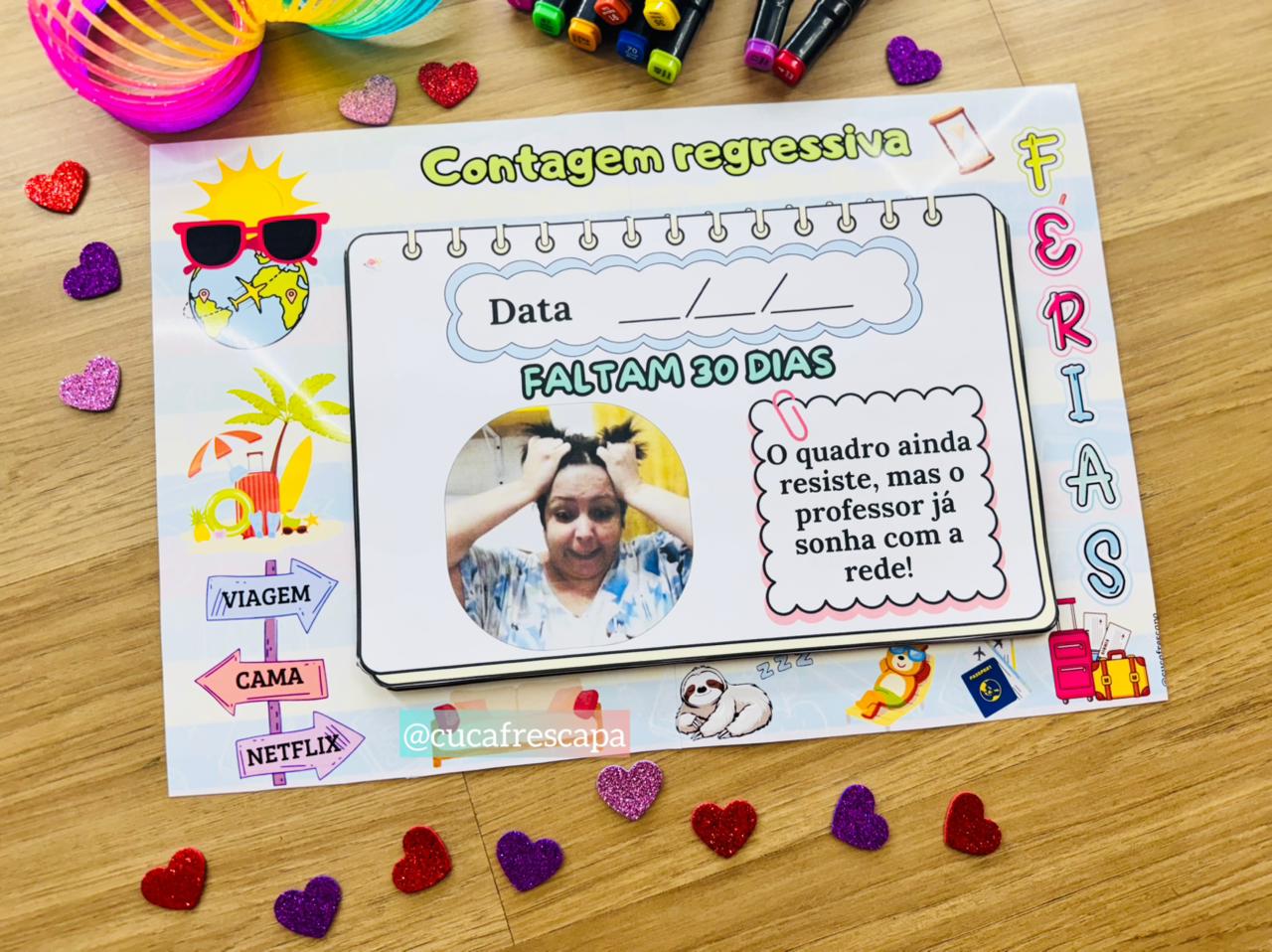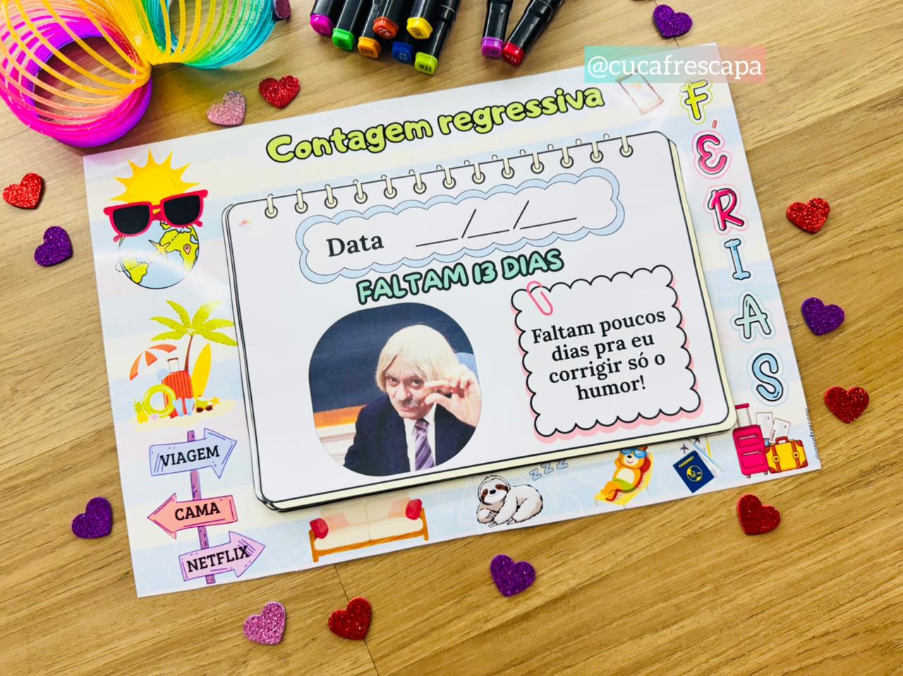 Trabalhar com humor a contagem regressiva para as férias com os professores é importante para aliviar o estresse, fortalecer os laços entre a equipe e criar um clima de leveza, o que contribui para a saúde mental e o bem-estar de todos.