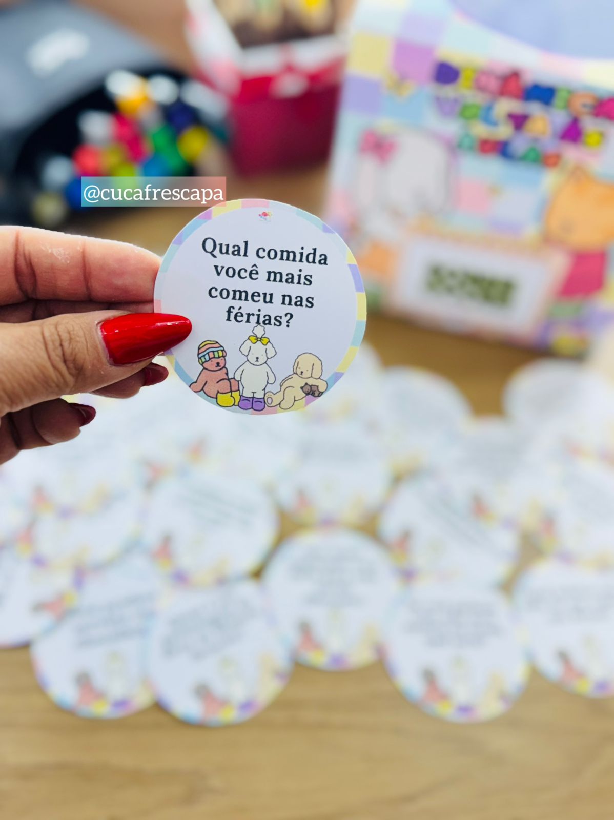 São 30 perguntinhas divertidas e leves para roda de conversa e brincadeira.