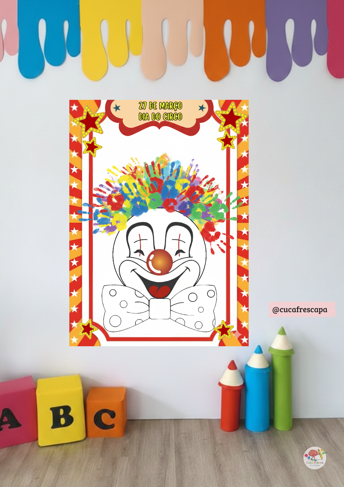 Vai para colorir e usar a imaginação para criar o cabelo do palhacinho.